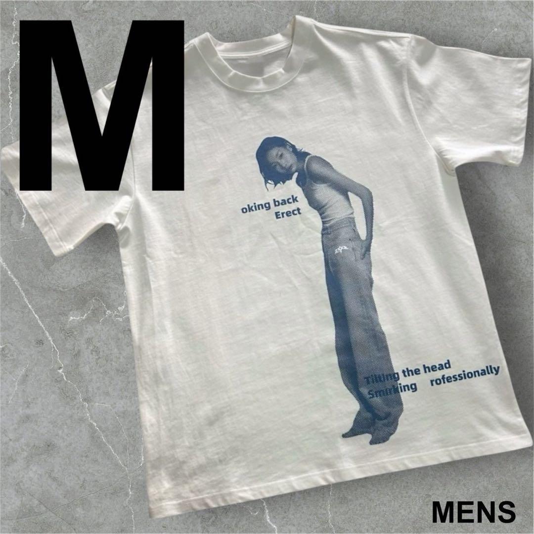 Tシャツ opium 女ブルー メンズ M 白 半袖 夏 ストリート