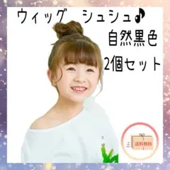 子供用 お団子 自然黒色 ナチュラル ブラック 2個セット ウィッグ シュシュ