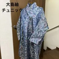 着物リメイク 着物衿iラインチュニックワンピース 大島紬❣️青灰色❣