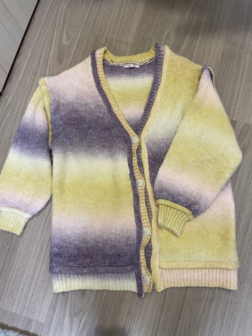 イエロー・パープルグラデーションニットカーディガン RETOROGIRL