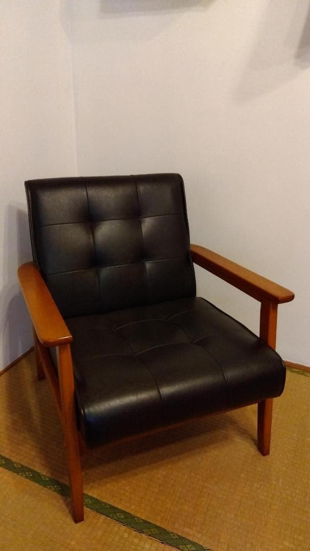 黒い合成皮革の1人掛けソファ
