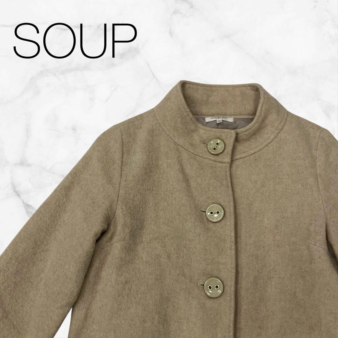 ★☆【スープ】アウタージャケットベージュ長袖Oネック前ボタンショート丈