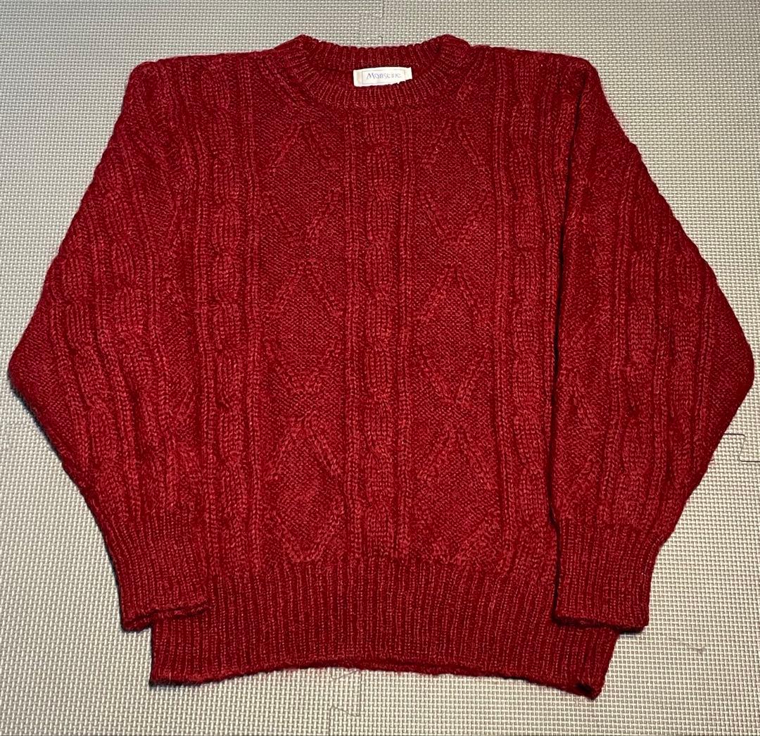 90s Monseine ケーブル編みニット セーター 赤 ワインレッド