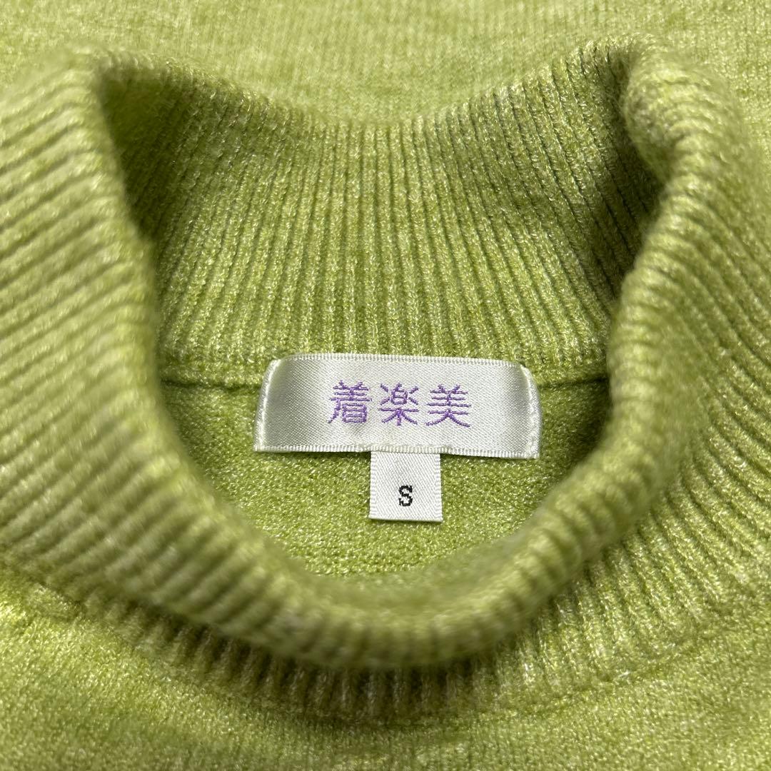 着楽美 明るい緑色の長袖ニットセーター