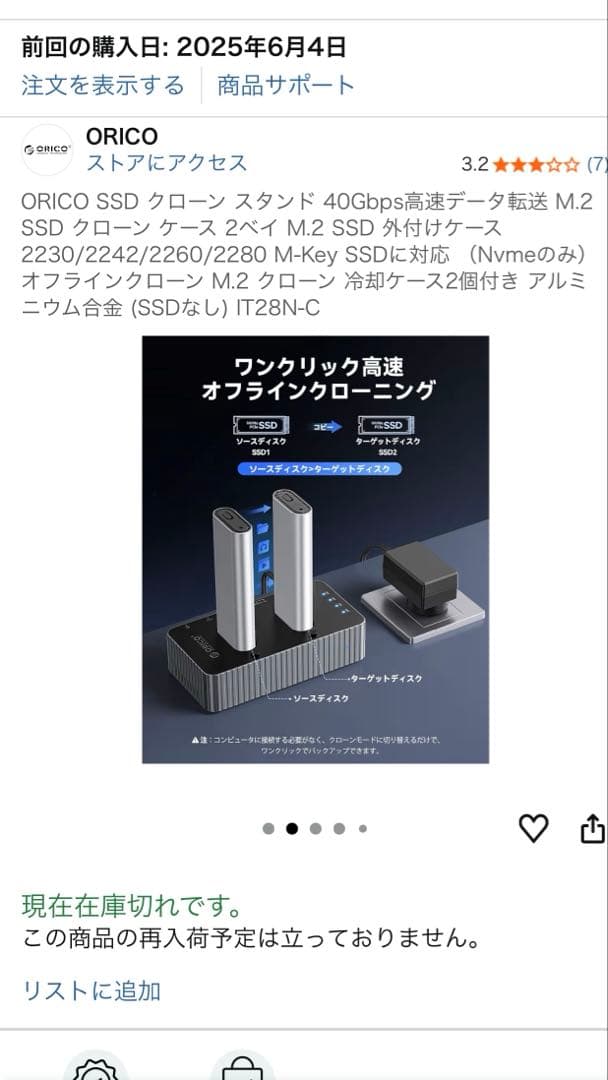 ORICO M.2 SSD Duplicator IT28N-C バックアップ