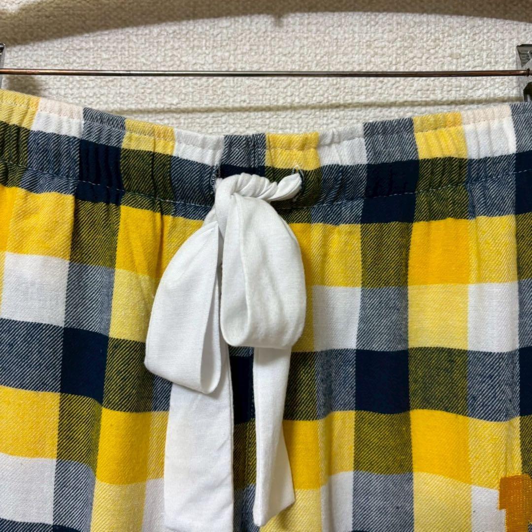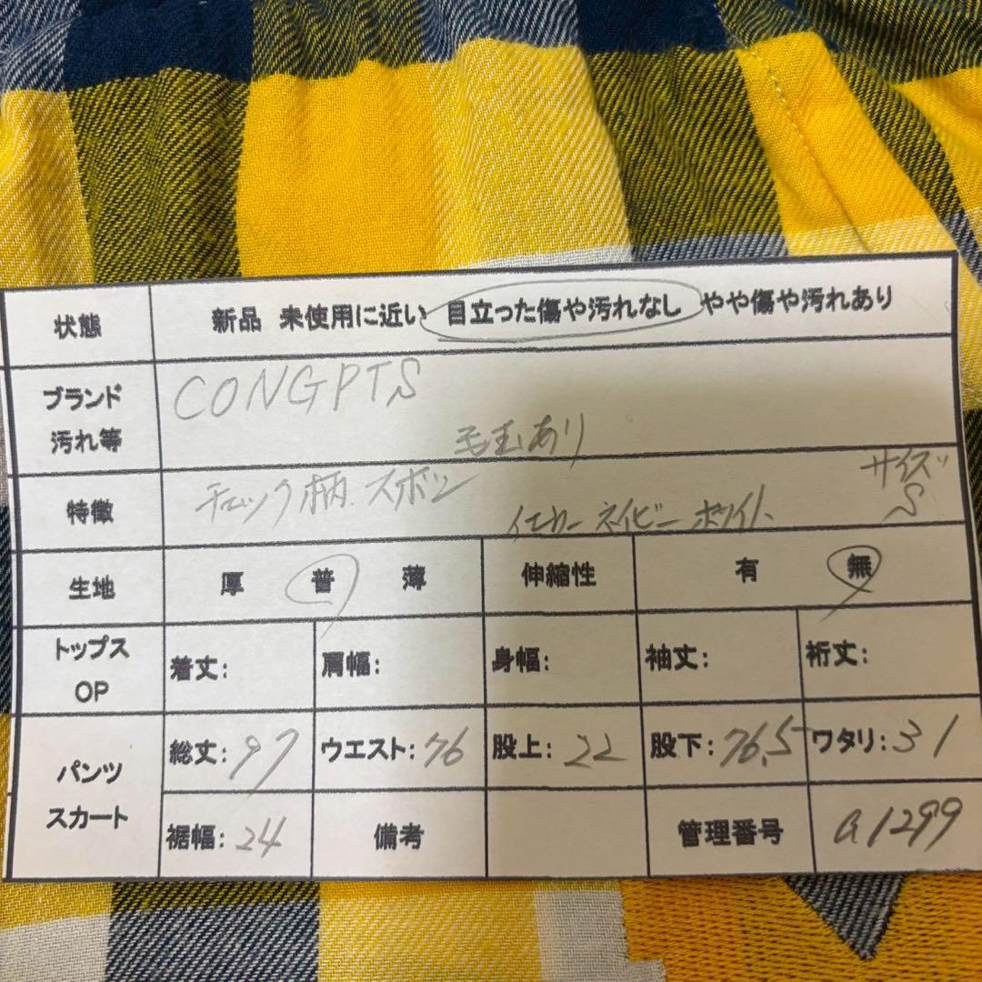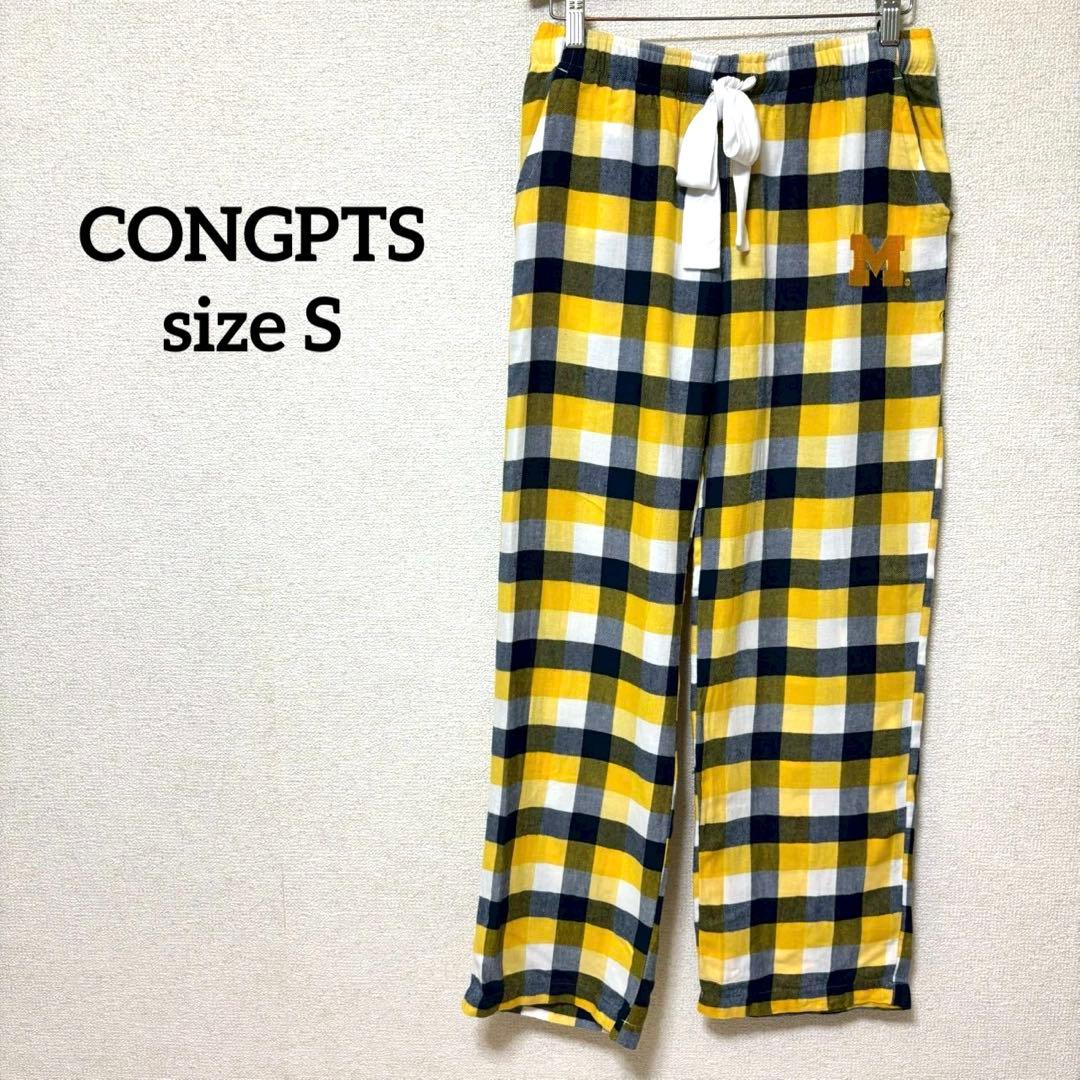 CONGPTS【S】チェック柄 パンツ 紐付き アップリケ ビタミンカラー