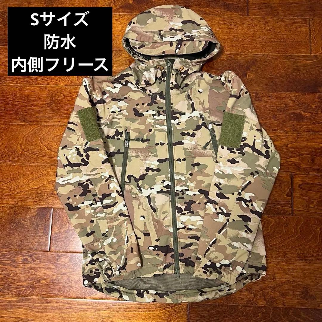 ミリタリーフリースジャケット 防水 サバゲー カーキCPモカ Sサイズ