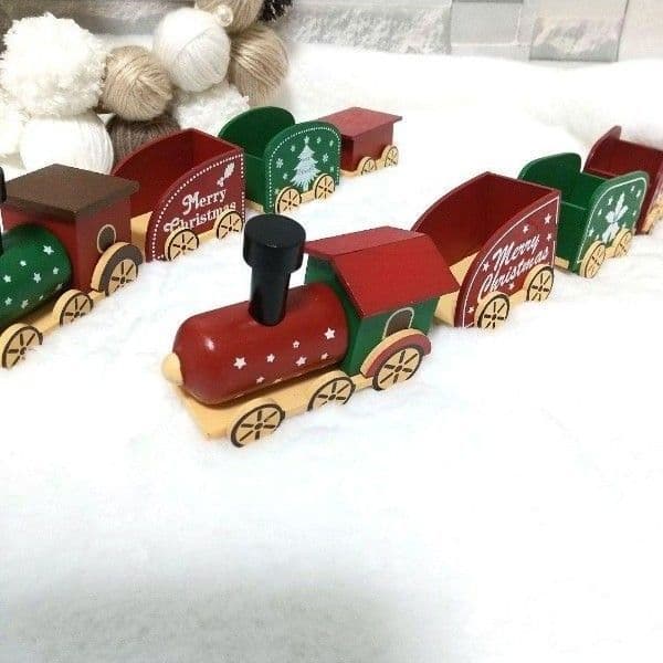 【新品】クリスマス仕様 汽車 機関車 2種類セット 木製インテリア 北欧風 ミニ