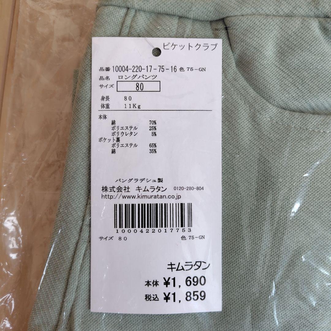 【新品タグ付き】Biquette Club ライトグリーン パンツ 80cm
