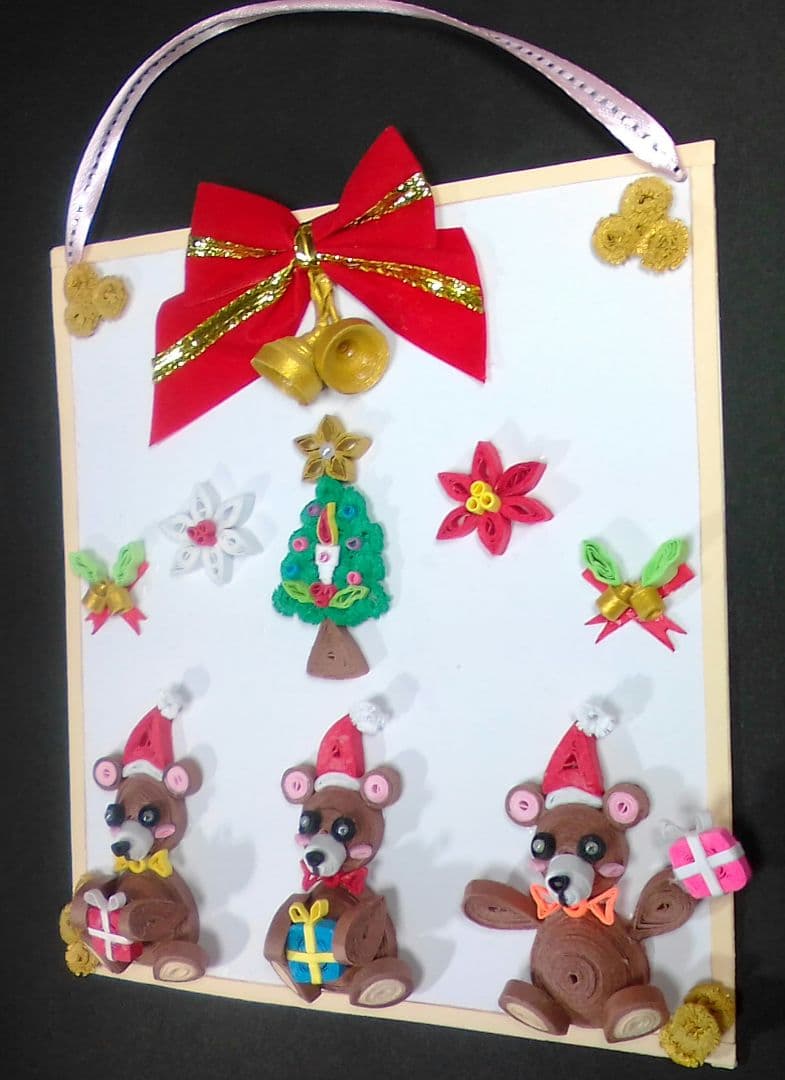 テディベア クリスマスバージョン (壁飾り)★ペーパークイリング