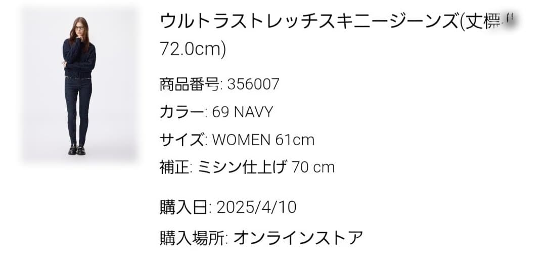 GU スキニーデニム 61cm ネイビー ほぼ新品 試着のみ