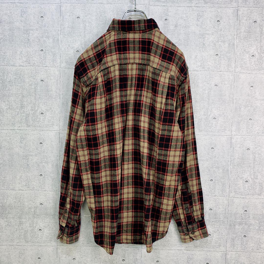 t0107 US 古着 長袖 シャツ 赤 黒 チェック M オンブレ アメカジ