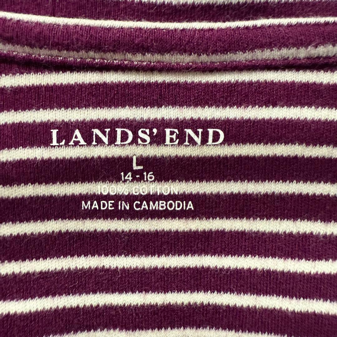 Lands' End ランズエンド L ストライプ ポロシャツ 8分袖