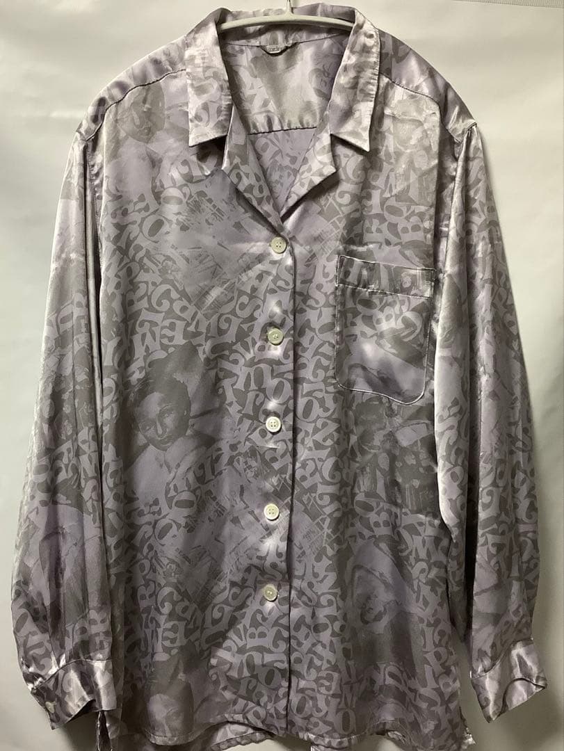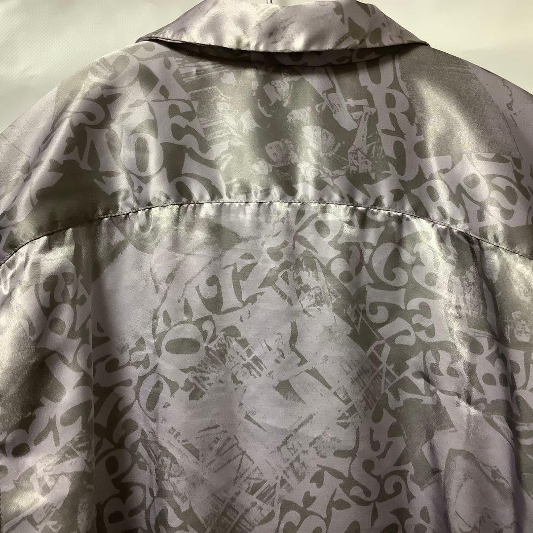 写真プリント 英字 シルク風シャツ 日本製 ロック パンク 男性にも レトロ