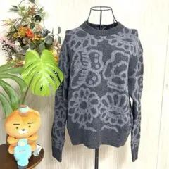 RAY CASSIN グレー 花柄刺繍 長袖ニット
