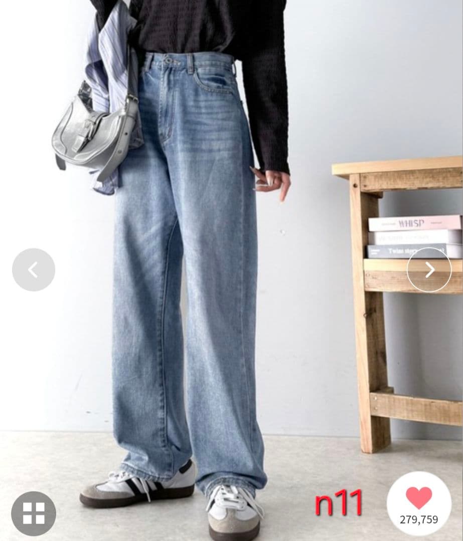ゆったりハイウエストワイドストレー トチノカラー&無地オーバーサイズデニムパンツ