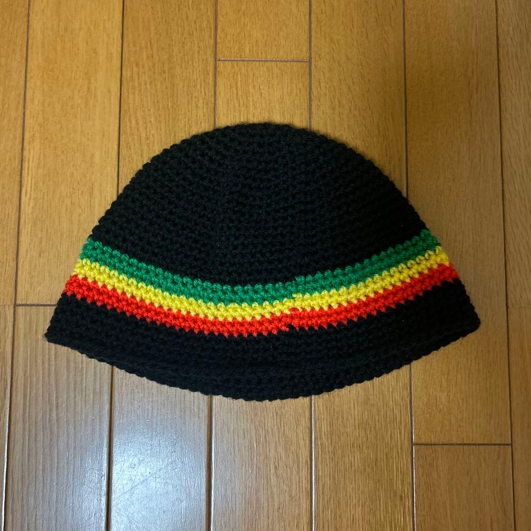 クラッシャーハット バケハ 編み物 ブラックレッドイエローグリーン