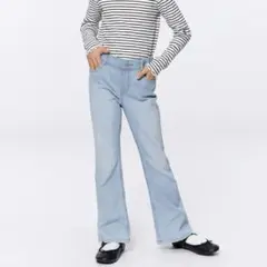 デニムブルー ワイドパンツ ゴム入り