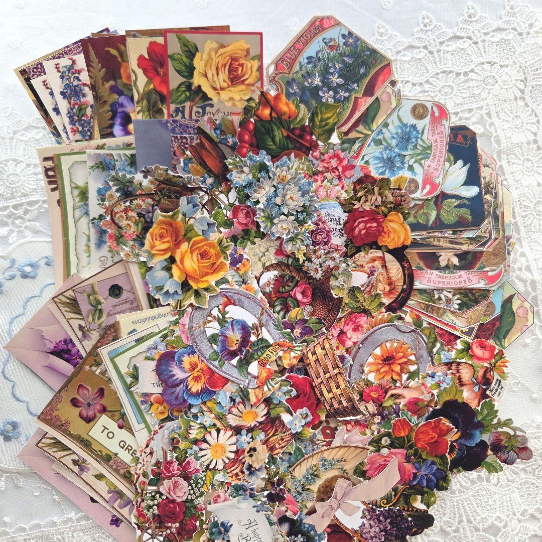 処分 ビンテージフラワー コラージュ素材 ダイカット ジャンクジャーナル