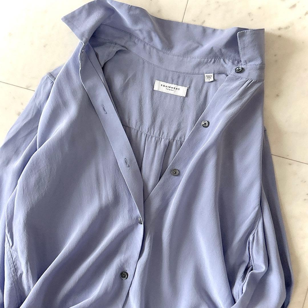 人気 エキプモン EQUIPMENTシルク100% ロングスリーブシャツ ブルー