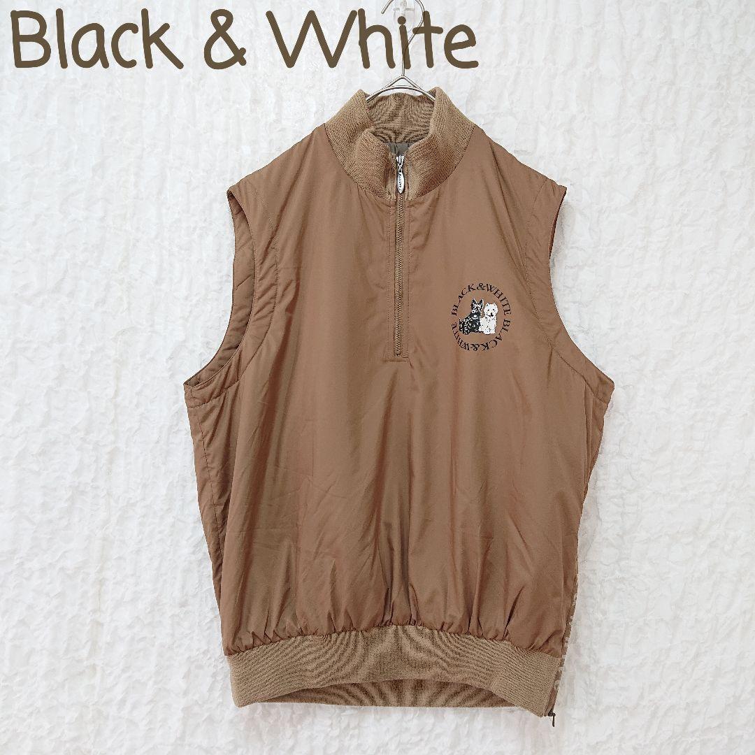 ブラックアンドホワイト ノースリーブ ハーフジッパーベスト 中綿 ロゴプリント