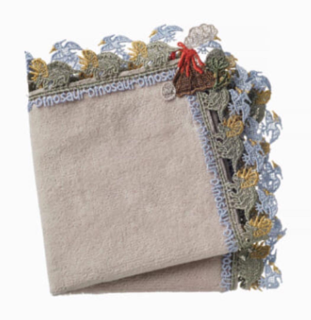 【新品・未使用】近沢レース シーズンタオルハンカチ 恐竜(グレージュ)