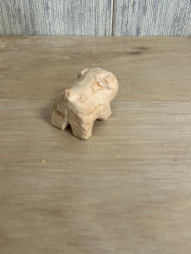 木製ブルドッグの置物 小型 ナチュラルウッド