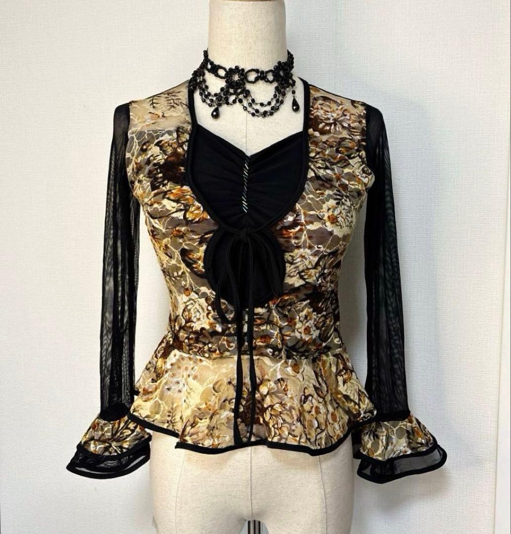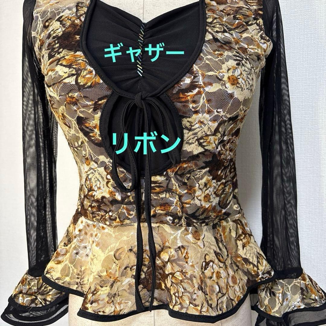 社交ダンス レッスンウェア イチオク ブラウンの花柄 ペプラム裾