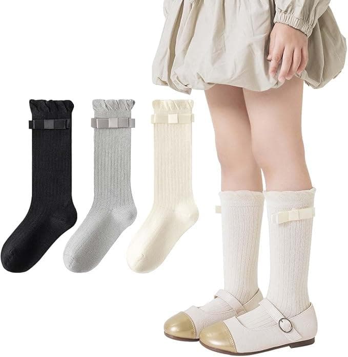 3足セット キッズ 子供用 靴下 ソックス ハイソックス リブ リボン XL
