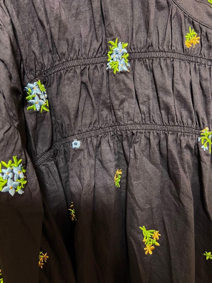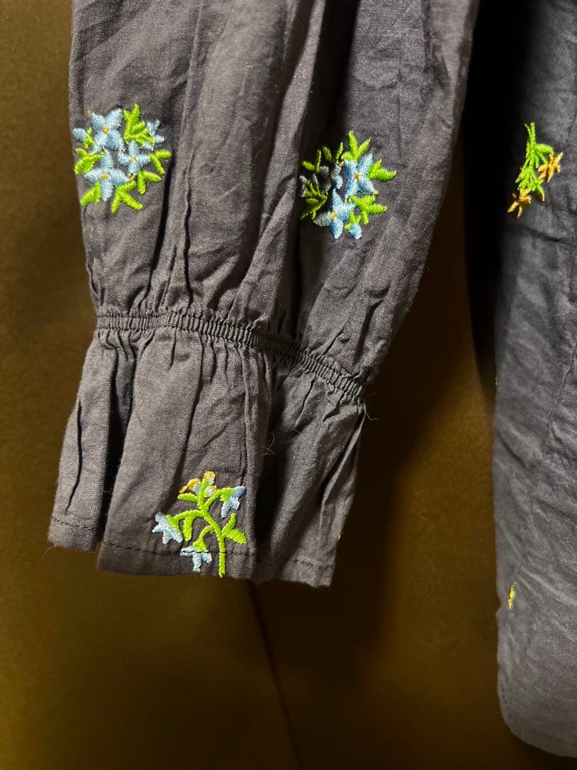 値下済み★ニコアンド★花柄刺繍のダークグレー長袖ブラウス 伸縮性あり L 大きめ