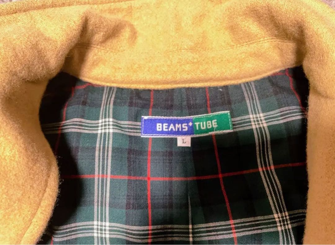 BEAMS TUBE ベージュ チェスターコート L シングルのダブルボタン