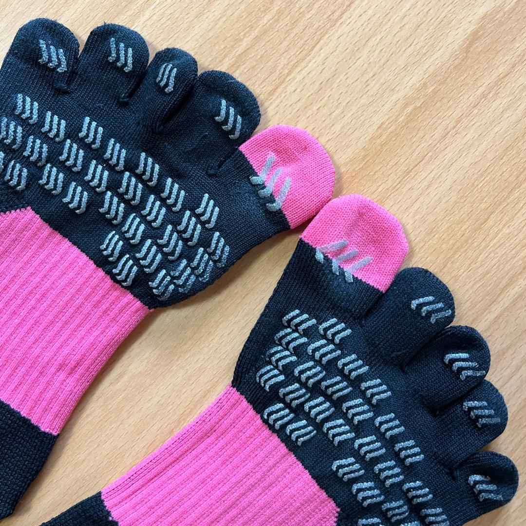 Tabio レーシンググラン 5本指ソックス 黒・ピンク 23.0〜25.0cm