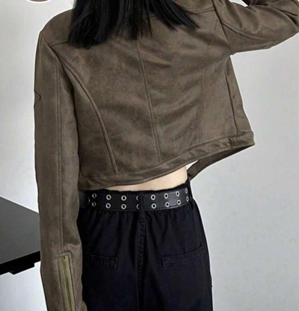 ブラウン スエード風 クロップドジャケット【サイズL】