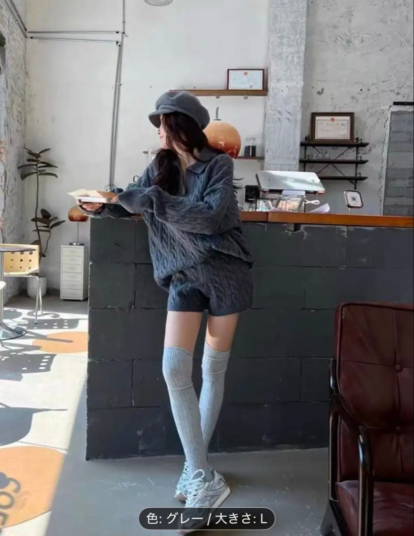 【水通しのみ未着用】ニット セットアップ トップス + ショートパンツ L