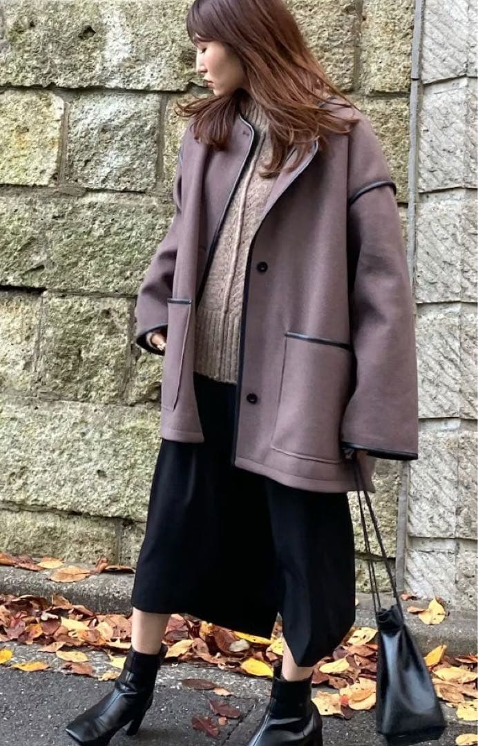 新品★アントマリーズ パイピングノーカラーショートコート ブラウンL