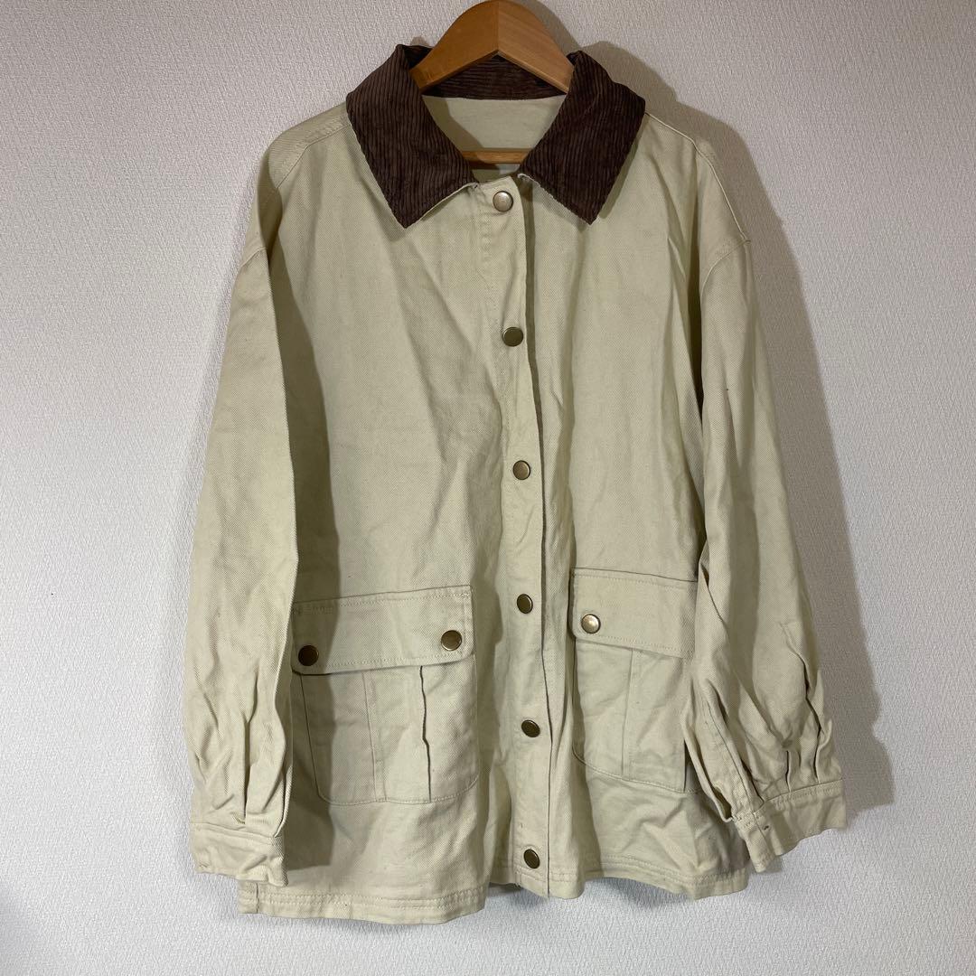 ベージュ コットンジャケット コーデュロイ襟