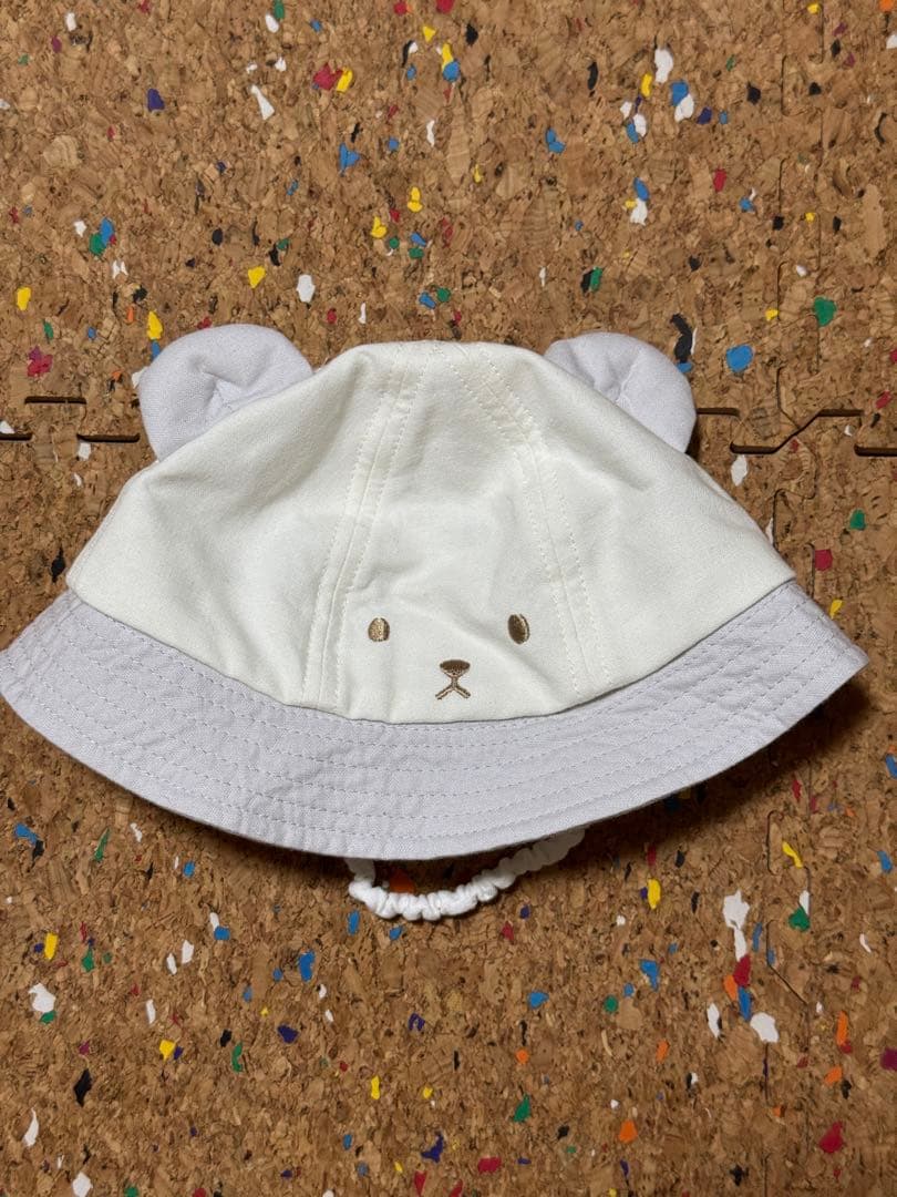 クマ耳付きホワイトバケットハット
