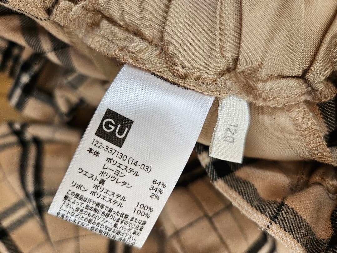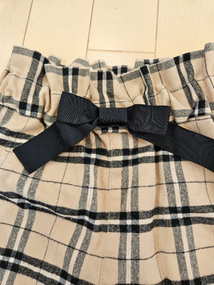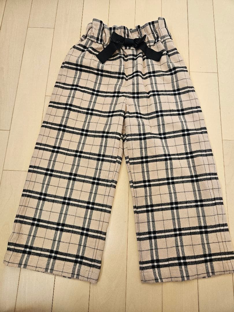 チェック柄リボン付きワイドパンツ