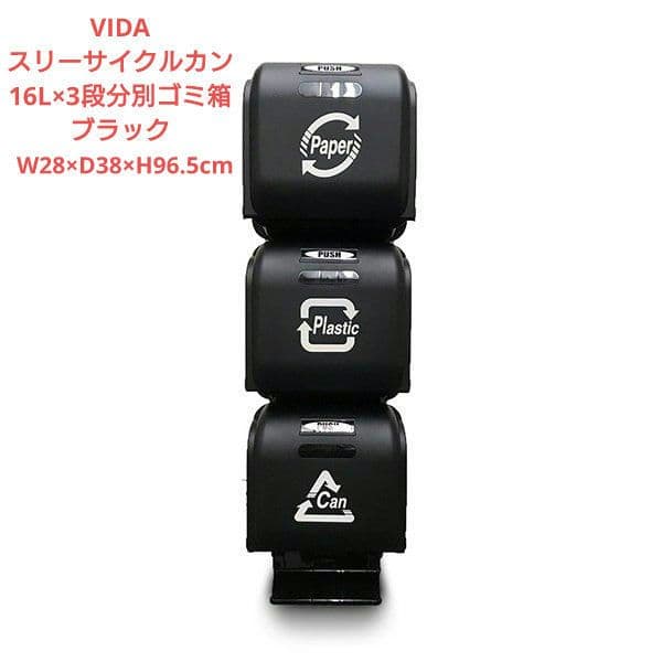 VIDA / スリーサイクルカン / 16L×3段 / ブラック / 分別ゴミ箱