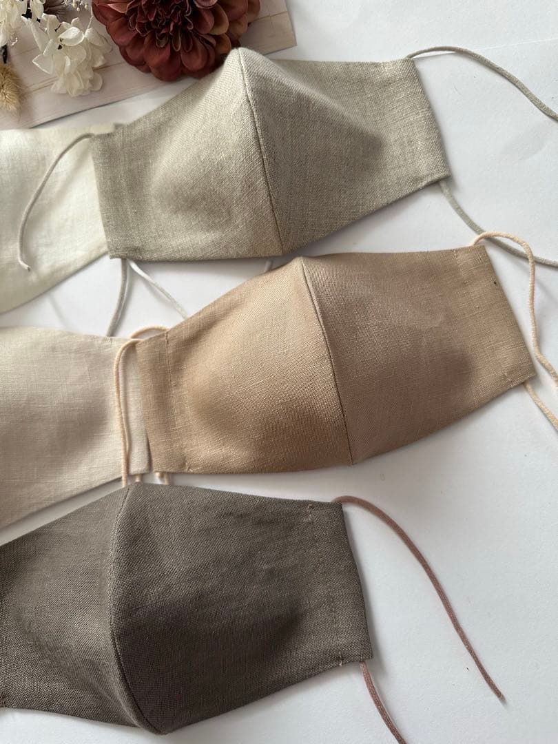 25544◇ナチュラルベージュ系◇リネン100%ハンドメイドマスク5枚セット