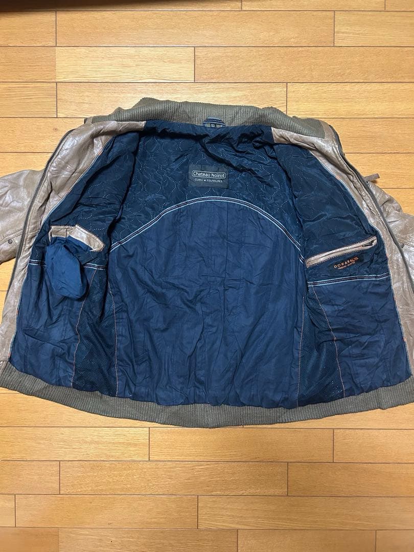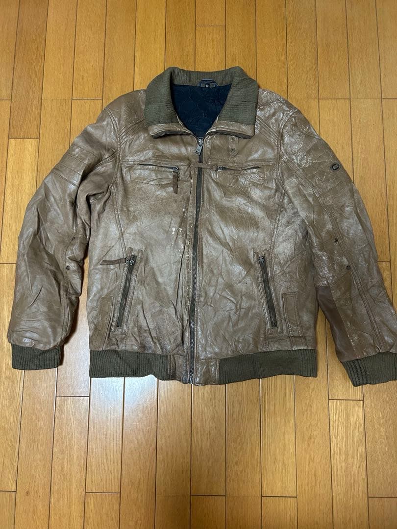 Lサイズブラウンネイビーレザーボンバージャケットアメカジ・ストリートヴィンテージ