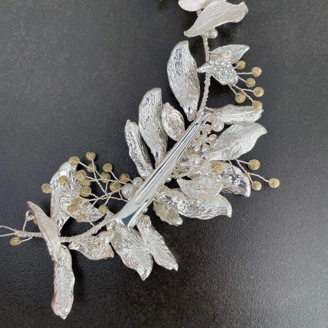 ウェディングヘッドドレス ピアスセット シルバー