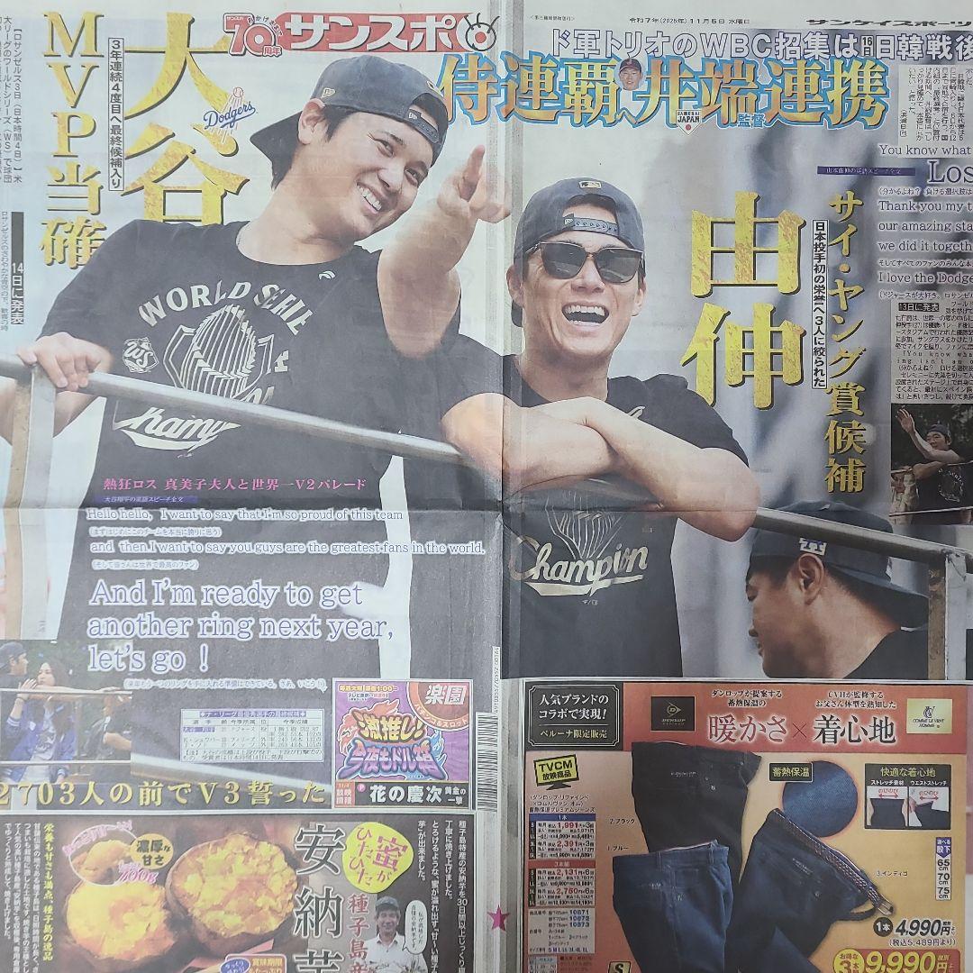 匿名配送!送料込み! 11月5日 朝刊 スポーツ紙全5社