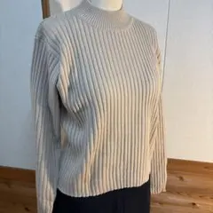グレーベージュ ウール100%リブ編み 長袖ニットMサイズ単品S3923