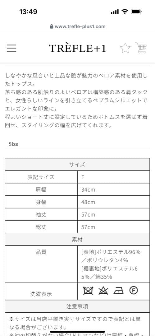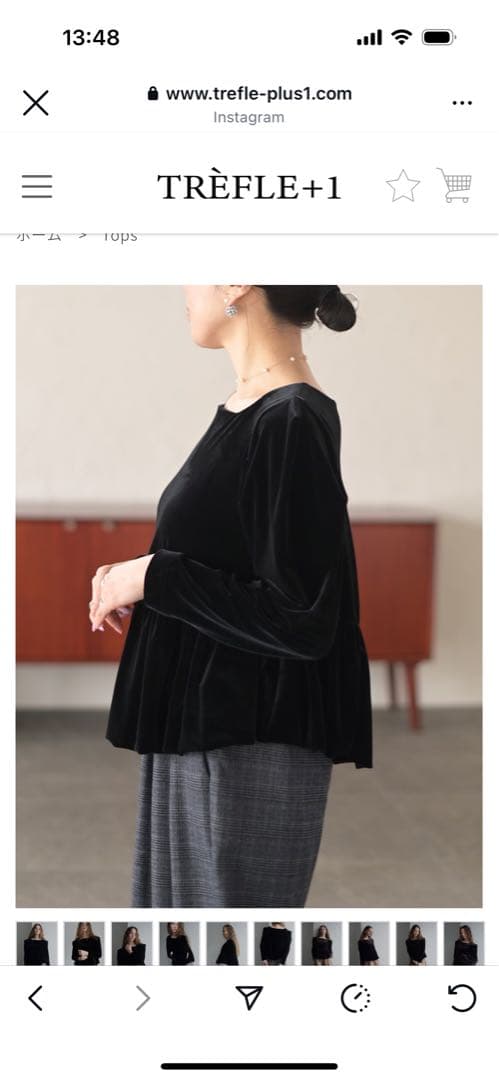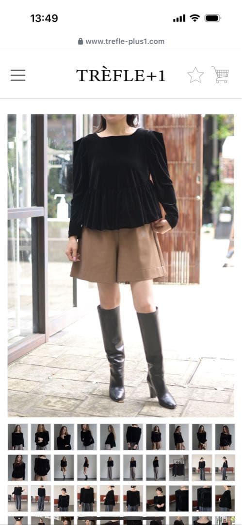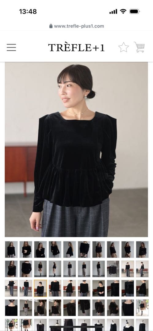 trefle+1 トレフル ベロア ぺプラム トップス ブラック
