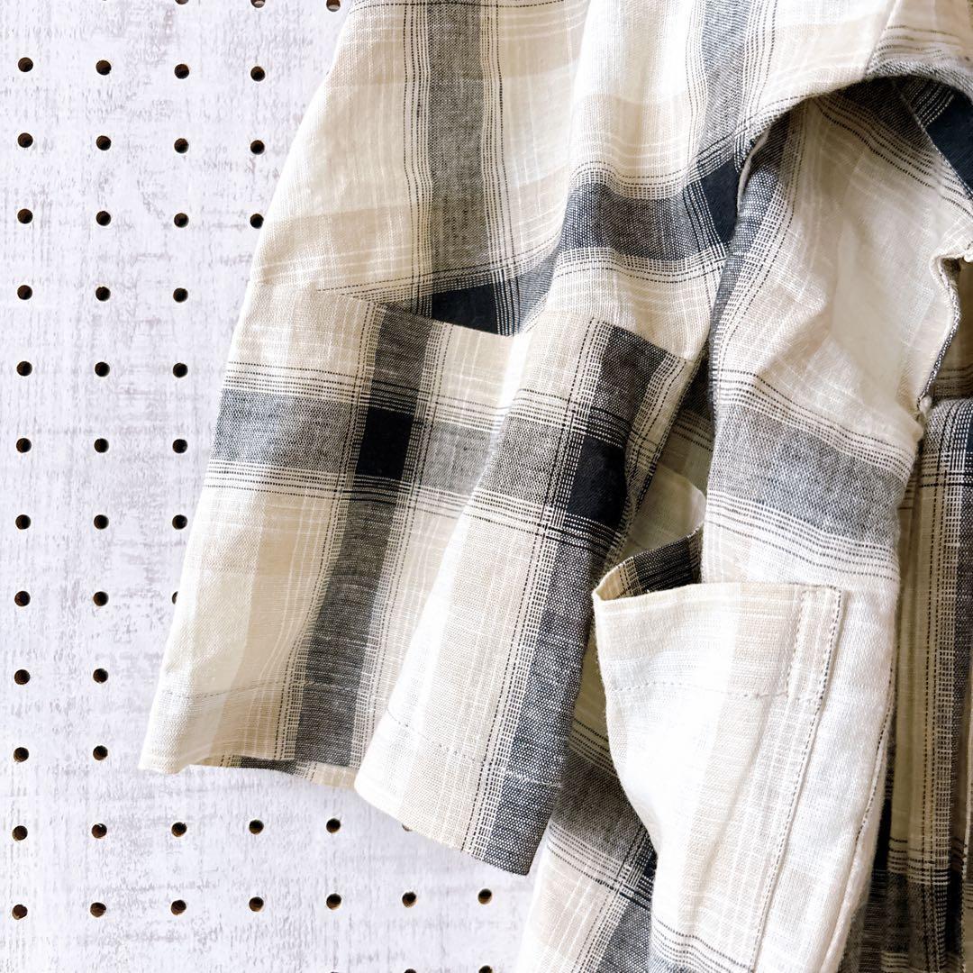 ケービーエフ ロングガウンワンピース チェック柄 コットンリネン 前開き 羽織り