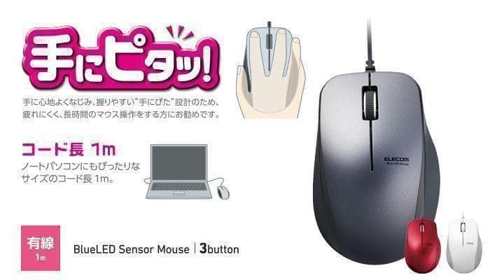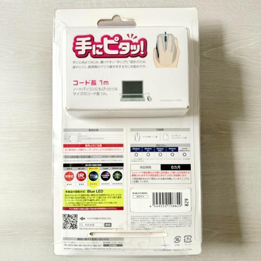 【新品】3ボタン BlueLED 有線マウス ホワイト 1m