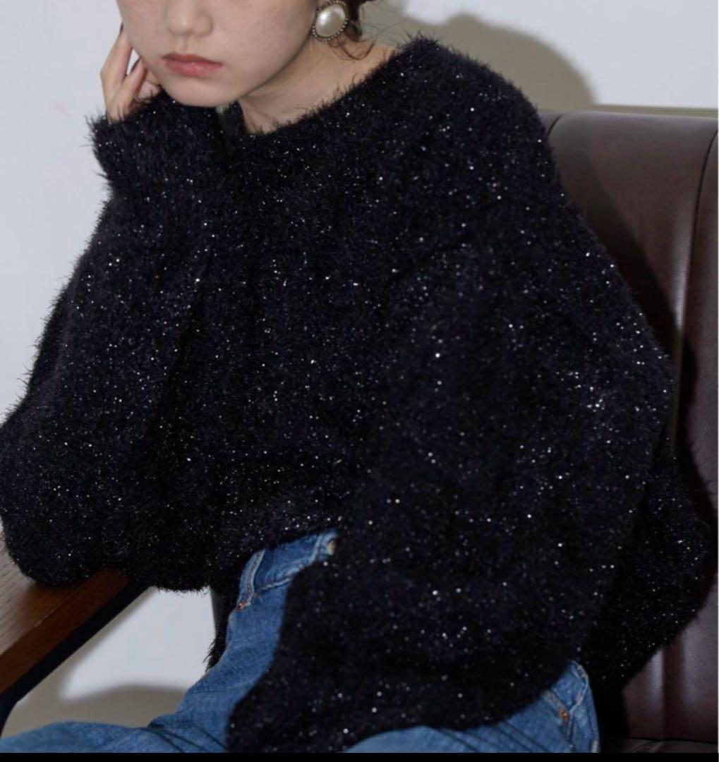 THEYOn グリッターシャギールーズフィットニットプルオーバー黒 102