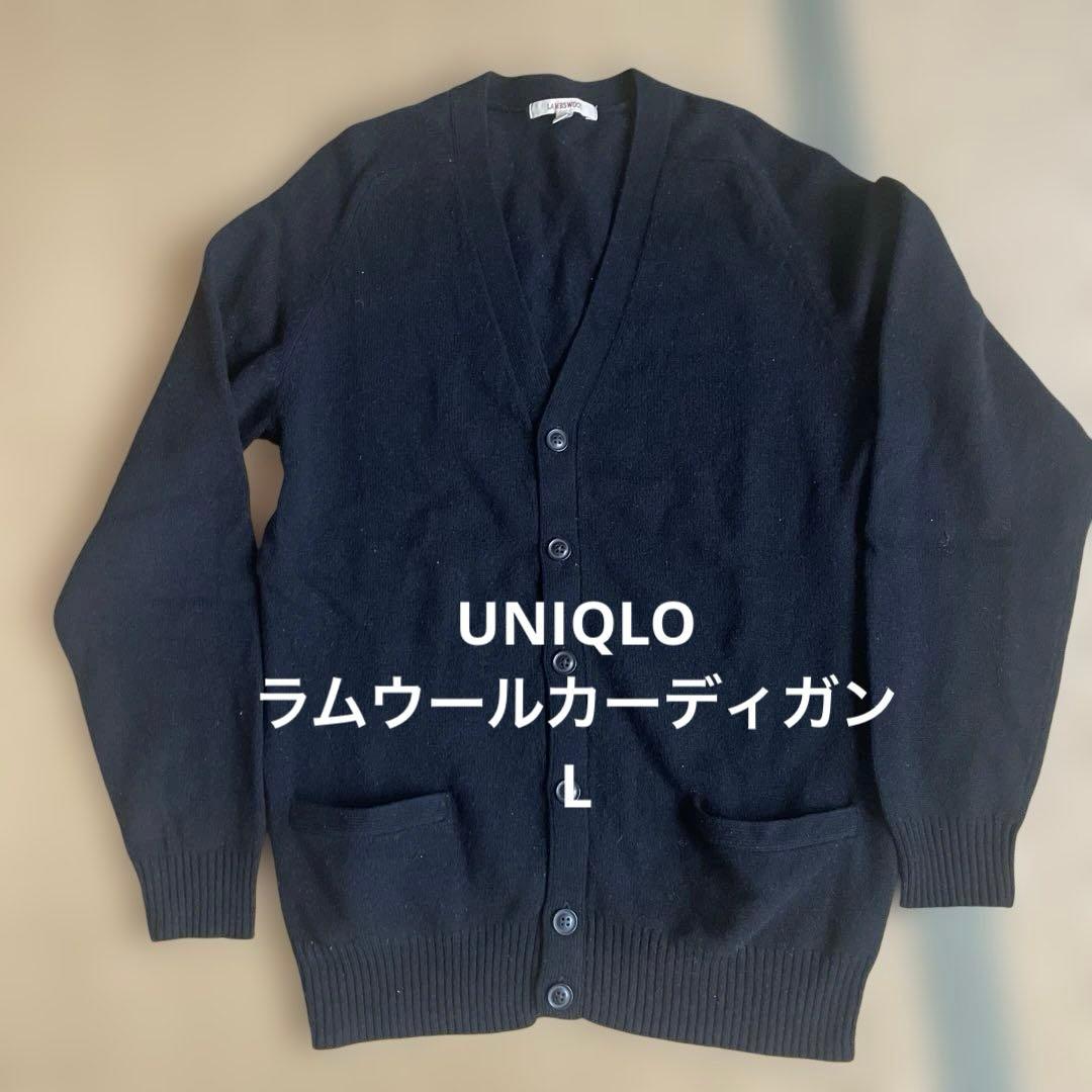UNIQLO LAMBSWOOL 旧ロゴブラックラム Vネック カーディガン L