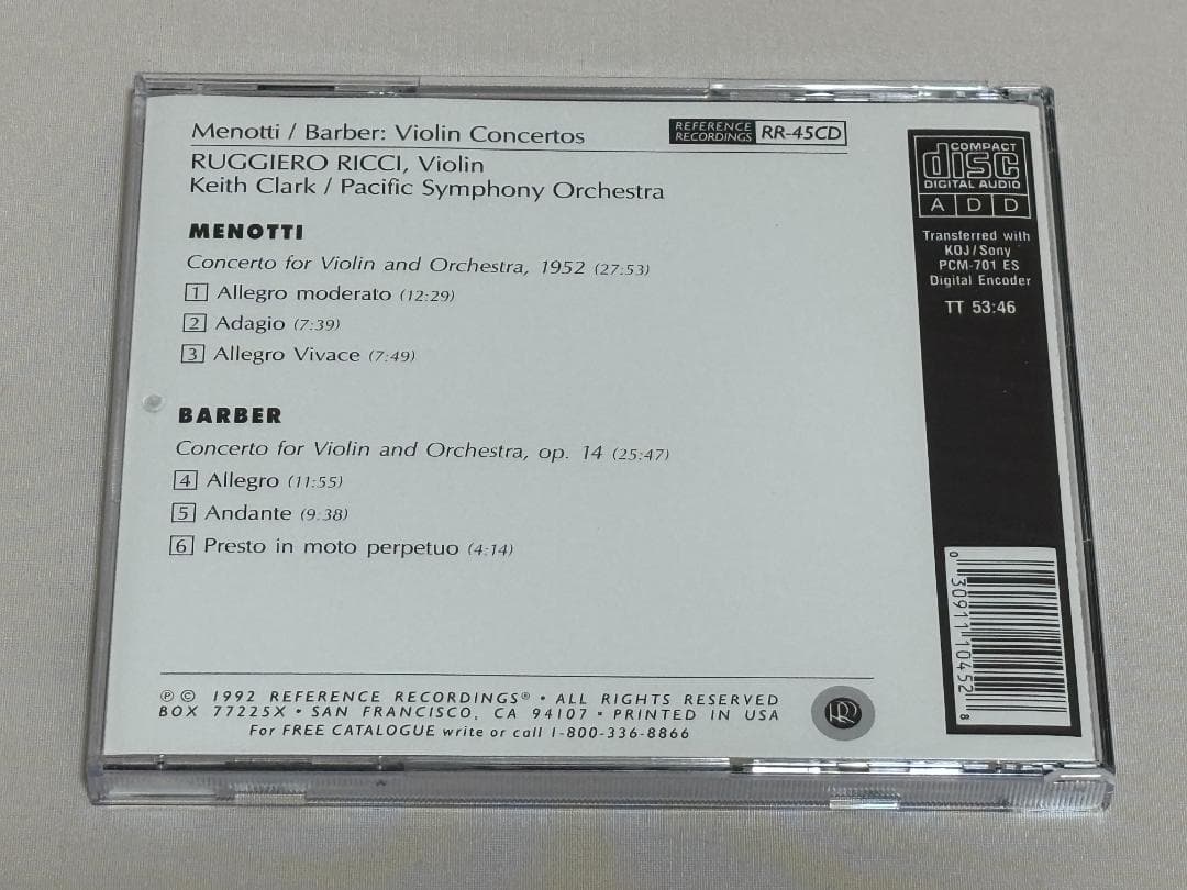 廃盤 REFERENCE◇メノッティ: ヴァイオリン協奏曲/リッチ◇S7M